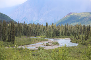 More later, I think! We got into Fairbanks this afternoon and signed in for 4 nights, but after discussing it, decided we will stay a week- park is very nice, trees and GRASS!!! and we will use this as our 'home base' and go up to Circle Hot Springs, the North Pole and hit the 'Farmer's Market' here in town.... Den is ALSO kind of thinking about taking an "Arctic Circle Air Adventure"... spendy, but I told him WHEN will we ever get back up here? While he is gone doing that, I can catch up on reading, cleaning, etc.... told him he just might need to take MY camera!! His is just too small to catch when mine will.....